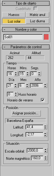 He utilizado luz solar, con la posición de Barcelona, la luz la he puesto fuera de la habitación para que se ilumine dentro de la habitación. Muchas gracias.