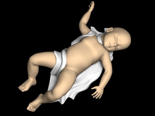 Buenas dummies, primero bienvenido. Lo segundo pasar a comentar unos detalles de la imagen del bebé, que, aunque me parece que está muy bien, tiene cosas que me han gustado mucho como los pies y la doblez de la rodilla, la arruga de dónde empieza el gemelo etc, pero le veo dos cosas que no me convencen, y es que creo que tiene la cara demasiado definida para ser un baby, y el brazo derecho creo que tiene una posición un poco antinatural, el codo debería estar girado unos grados hacia afuera (no sé si me explico), en general de todos modos, están bastante bien los trabajos. Saludos.