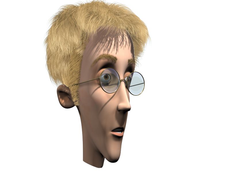 Hola, me sumo a la bienvenida y te recomiendo que te plantes lo que te ha comentado la peña, que aquí hay gente que sabe mucho. Me ha gustado sobre todo el personaje cartoon. El pelo está muy logrado, aunque las patillas parecen demasiado duras, como si fuese barba. También podrías ponerle un poco de refracción a los cristales de las gafas, aunque sea para ver qué tal queda. Nada más, espero leerte a menudo por aquí o.
