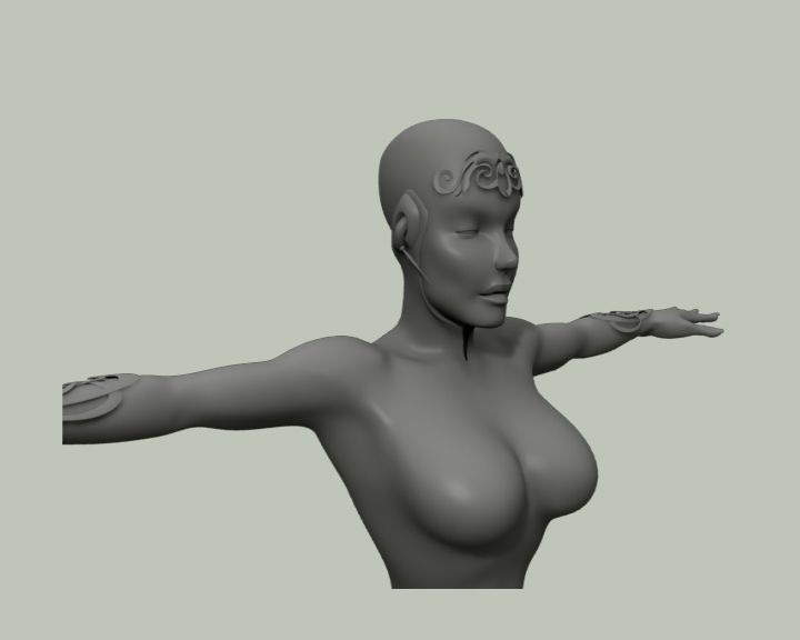 Madre mía. ¿cuánto tiempo pasó desde que hiciste el bebé hasta que hiciste a este pedazo de mujer con tanta personalidad? Está muy guapa. Ya sólo por decir algo (y que conste que sólo digo por decir algo) le marcaría un poco los pezones para que no quede tanta curva ahí suavizada o le haría un par de arrugas si le pones camiseta ajustada o algo, pero una irregularidad en esa zona, por lo demás está increíble. Saludos.