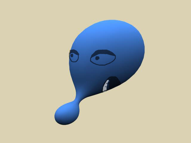 Ok, mola. Subo la escena, pero la idea de que la boca y los ojos estuvieran como dibujados sobre el modelo en 2d la tenía más que nada en la cabeza.