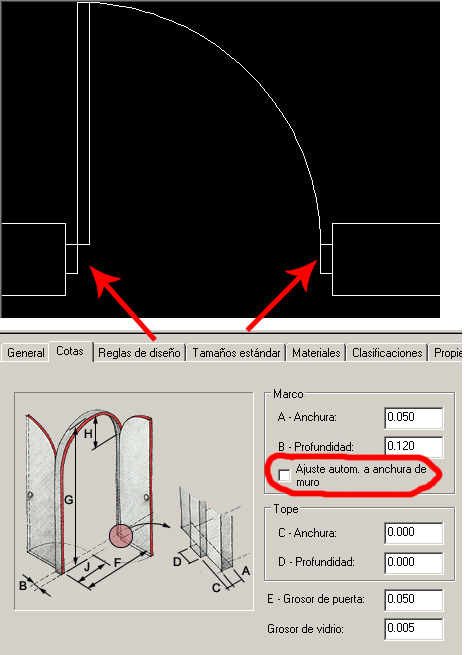 Y si tenemos marcada esa casilla (Autodesk sabrá para que la ha puesto ahí, pues yo aún no he visto ninguna puera así) los Marcos se ven cómo se muestra: