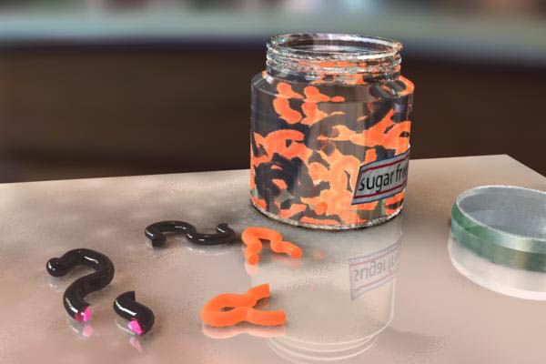 Para mejorar la escena, quizás no deberías iluminar con un, hdr. Probablemente se deban a eso las manchas que hay encima de la mesa. De todas formas, 24 horas de render es excesivo, creo que hay algo en la escena que está mal configurado (quizás un gran número de muestras o trabajo con causticas). Me han gustado mucho ambos materiales de las gominolas. Saludos de Drakken rotor.