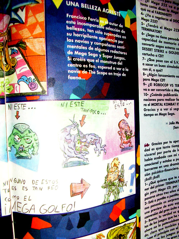 Ando un poco nostálgico y me decidí a revisar un poco la tecnología de antaño en mí colección de revistas y me encontré con esto, la revista creo que es del año 93 más o menos y creo que por los dibujos es indudablemente Franz Ferriz, coincidencia supongo es uno de los 2 números de la revista megasega que compre en aquél entonces, no vaya a ser que Ferriz enviaba dibujos a todos los números. Saludos.