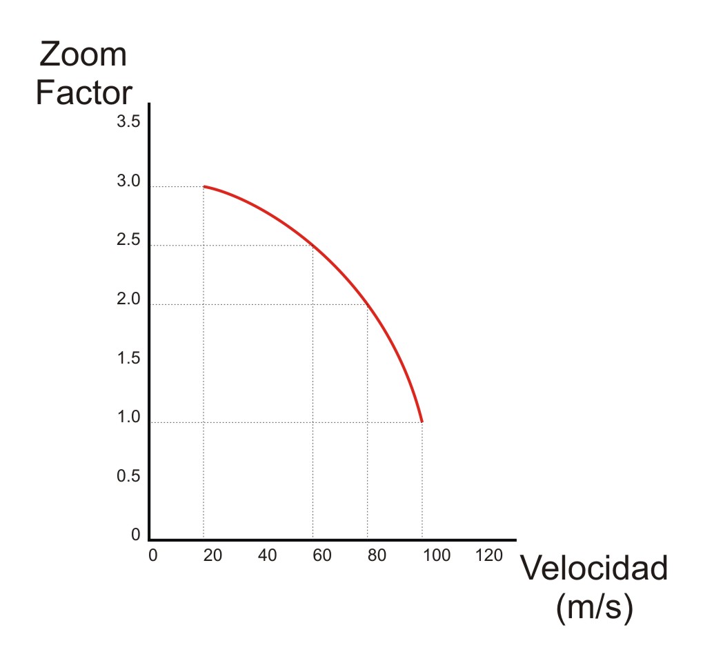 Zoom factor 2.0 velocidad de la cámara 80 m/s.