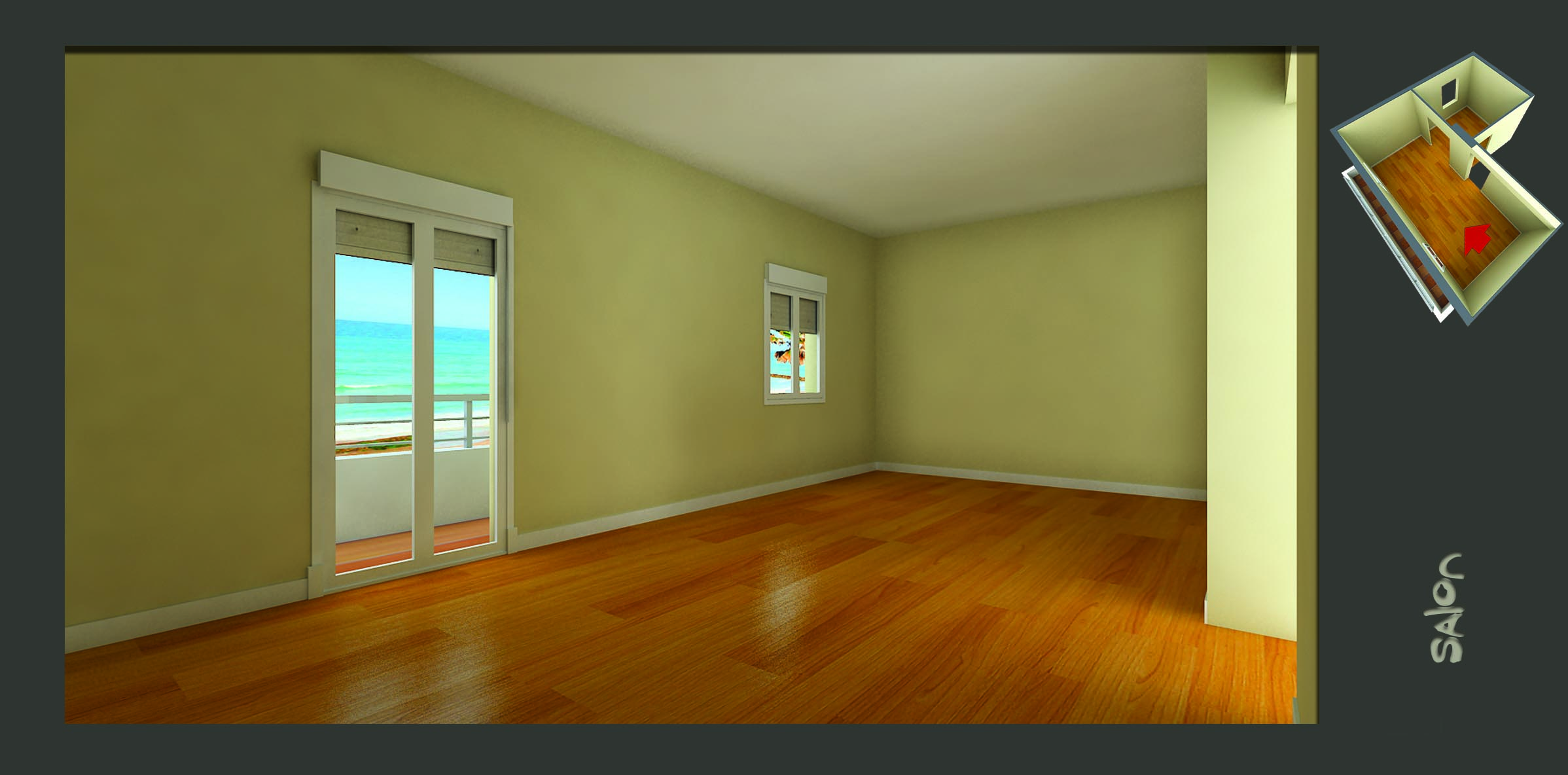 Después, a la hora de revisar mi render, encuentro que la iluminación global no es correcta. El origen de la luz suele estar más o menos quemado y según nos alejamos del mismo, al interior de la habitación que esté iluminando, la escena de oscurece demasiado. Creo que podría conseguir mucha más calidad si mis luces no quemaran las escena y no se oscureciera tanto conforme entra en la estancia, echadme una mano.