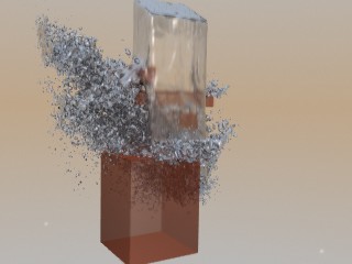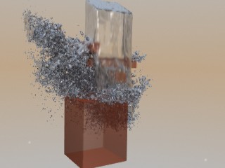Ahora, el sistema de refracción es por trazado de rayos, y eso exige un límite de Scattering (el botón depth). Pero claro, hay mogollón de partículas y hay que poner el parámetro muy alto. Con 5 está bien, pero no del todo, y 10, que es el máximo, tampoco parece todo lo realista que me gustaría.