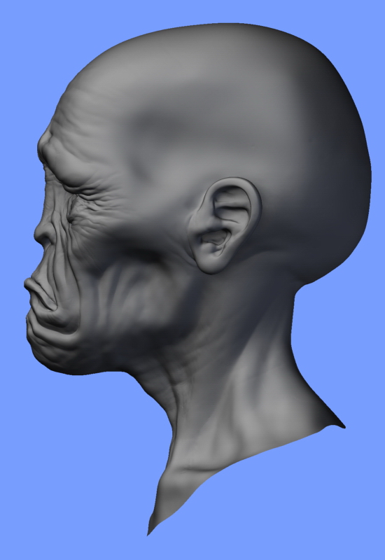 Muy inacabado, la anatomía facial es un poco, de fantasia, pongo la excusa de que es un zombie extraterrestre mutante y deforme (y me quedo tan pancho).