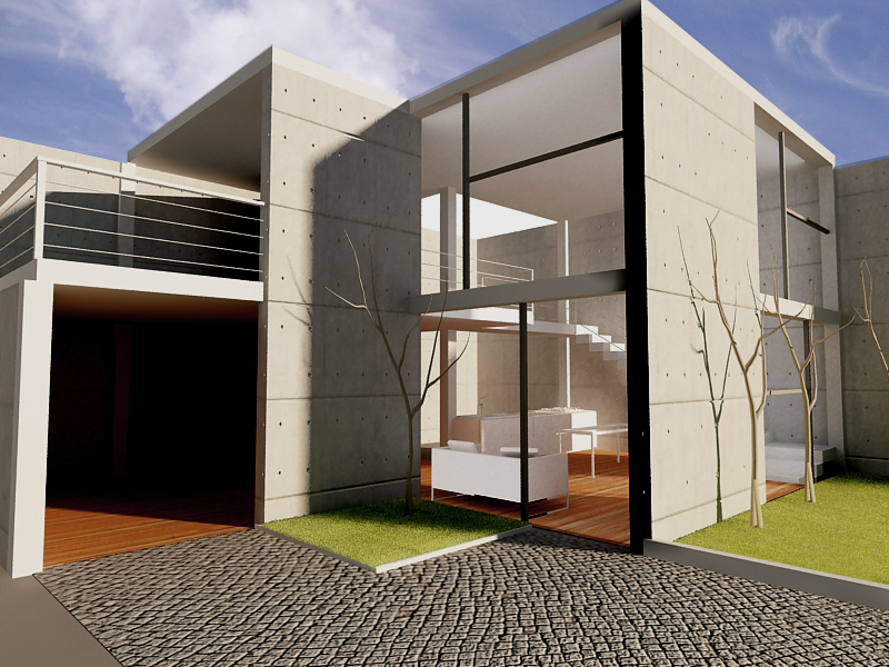 No esta tan mal, prueba también a añadir plantas, muebles de colores, un coche, cosas que vistan un poco.