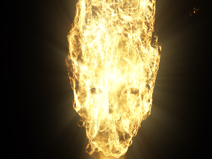 Birkov: justamente mi deseo es que la cara se mantenga en un segundo plano, y el protagonista sea el fuego, si bien es cierto aún la cara se nota muy poco.