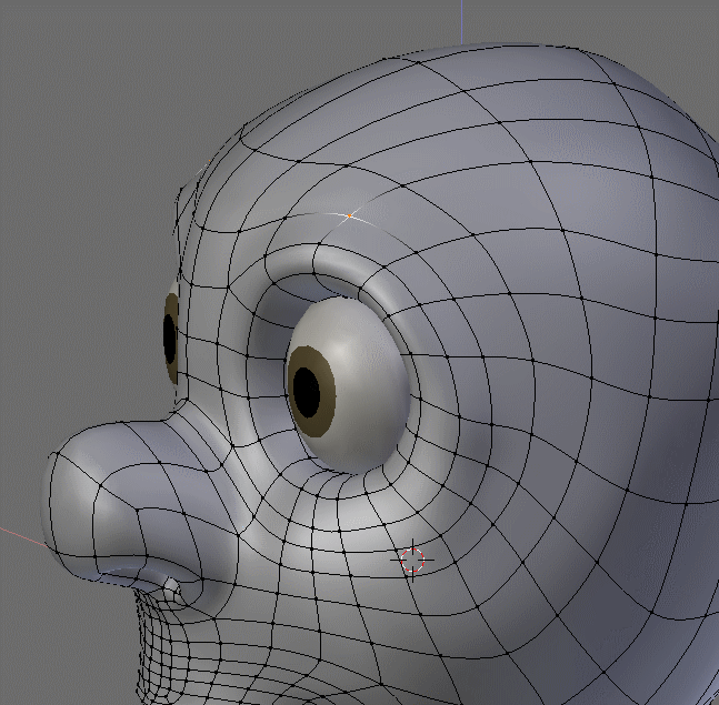 Tonpe: un saludo, gracias por tu comentario. Update (hoy es puente festivo aquí.): mejorada la topología en la parte de entrecejas. Añadidos ojos provisionales, deformados con un lattice.