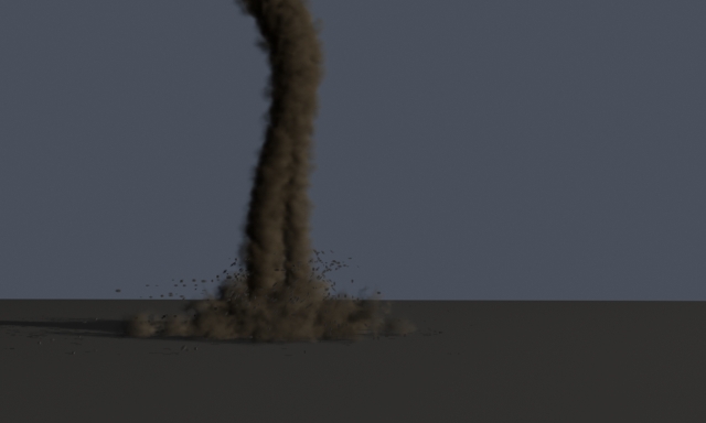 El rflow es fácil de usar, el sistema de partículas se lleva bien. El problema es el render final. Pero si eso está hecho con afterburns, qué más da con que hagas las partículas, se pueden mezclar varios tipos de emisores(tornados) si lo quieres, y estos interactúan por su cuenta. Puedes hacer diferentes emisores y mezclarlos todos en 3dsmax luego, puedes asociar objetos a las partículas, como escombro, por ejemplo, pero es como tú dices, son gustos y también lo que esté al alcance de cada uno. Saludos.