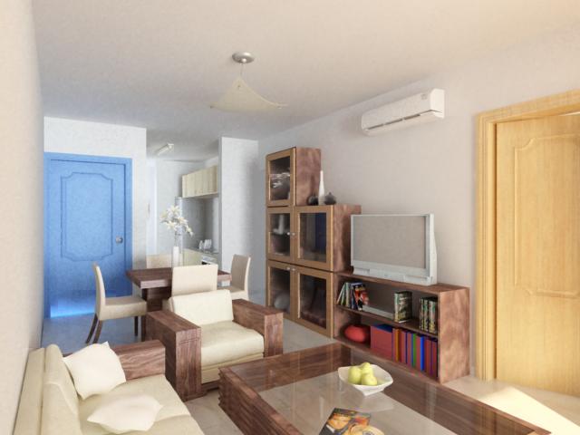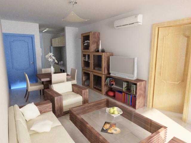 Las proporciones de los muebles se ven un poco raras. Por que no intentas con alguna escala humana para propocionar más el render?