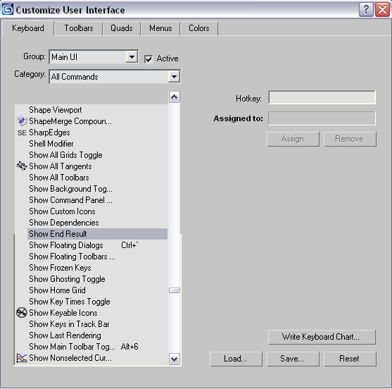 De cualquier modo, sí que puedes activar y desactivar el botón que comentas con unas sencillas órdenes de Maxscript. Aquí te dejo esto. Ábrelo en una ventana de Maxscript, selecciónalo y lo arrastras a tu barra de tareas. Se creara un botón que ejecutara el código. Si quieres asignarlo a un atajo de teclado, sólo ve a customize/keyboard y bajo category raganddrop, tendrás el nombre del macro script, que seguramente sea macro1 si nunca has arrastrado código a la barra de tareas. Lo asignas a un atajo de teclado, y salvando el archivo de configuración, listo: