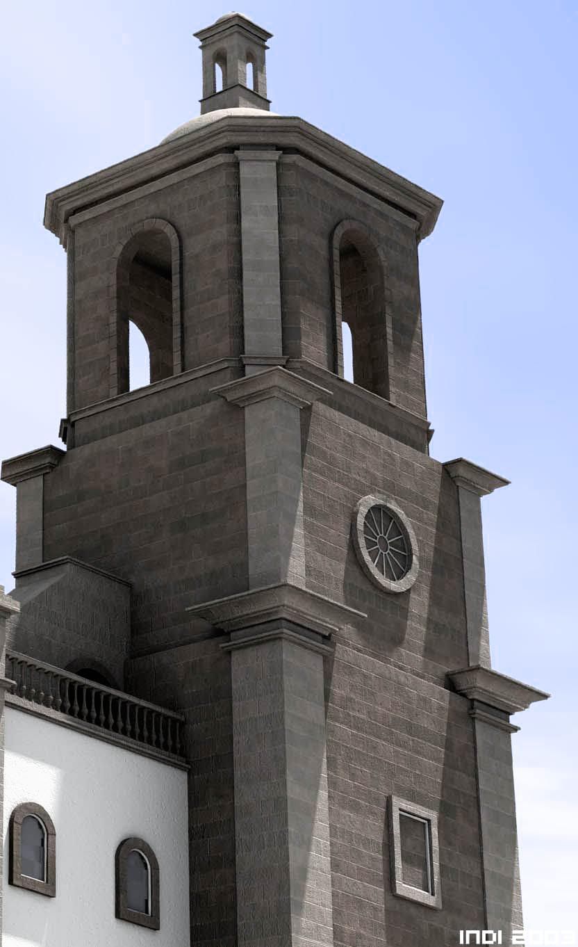 Sí, es una catedral típica de canarias, todas tienen unos elementos arquitectónicos muy comunes. Gracias por los comentarios, las texturas, pues hice unas muy tochas que ajustaban perfectamente en el tiling partiendo de 1 fotografía (en realidad de la fotografía solo pude aprovechar 3 bloques, no veas que curro). Sobre el cielo, yo lo veo perfectamente, ¿hay alguien que también lo vea raro? Yo lo he imprimido y queda perfectamente. Sobre Arnold no quiero comentar nada.