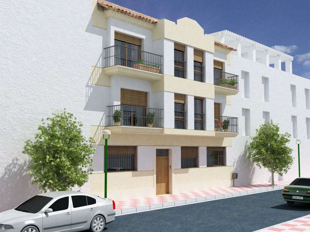 La imagen me parece perfecta, aunque rellenaria algo más las casas de al lado (no tanto blanco). Soy un principiante en esto, parto de 0 y sin ánimo de abusar. ¿podrías adjuntar la textura de enfoscado blanco grueso y comentar la manera como lo has hecho?