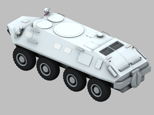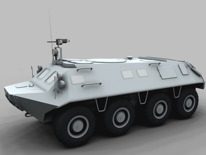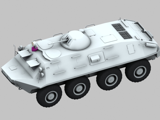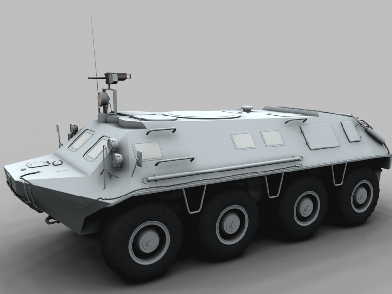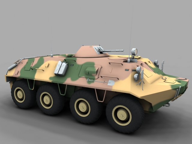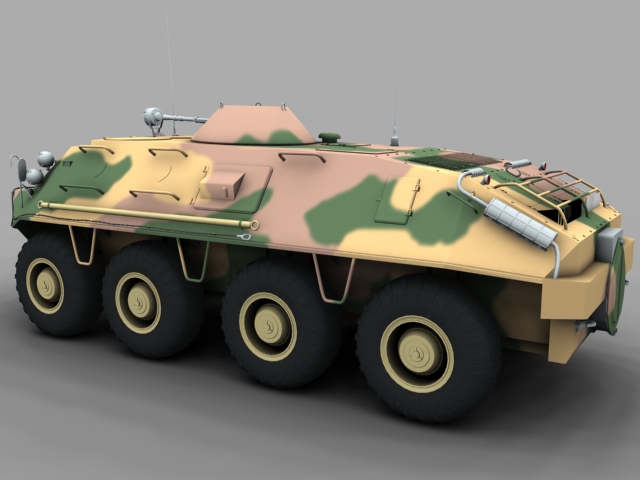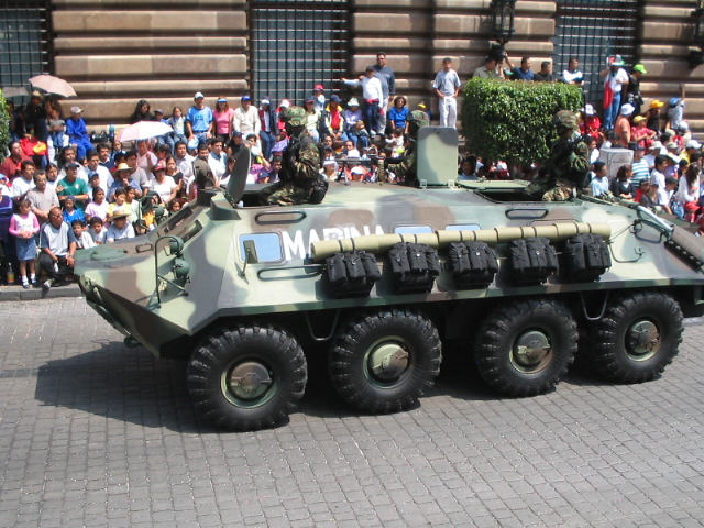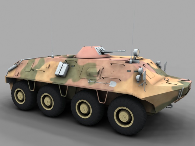 ¿Qué, que es esto? Pues no es un tanque ni tiene orugas, pero es militar de acuerdo. Se trata de un vehículo blindado sobre ocho ruedas ruso algo antiguo ya, ahora va por la versión btr-80.