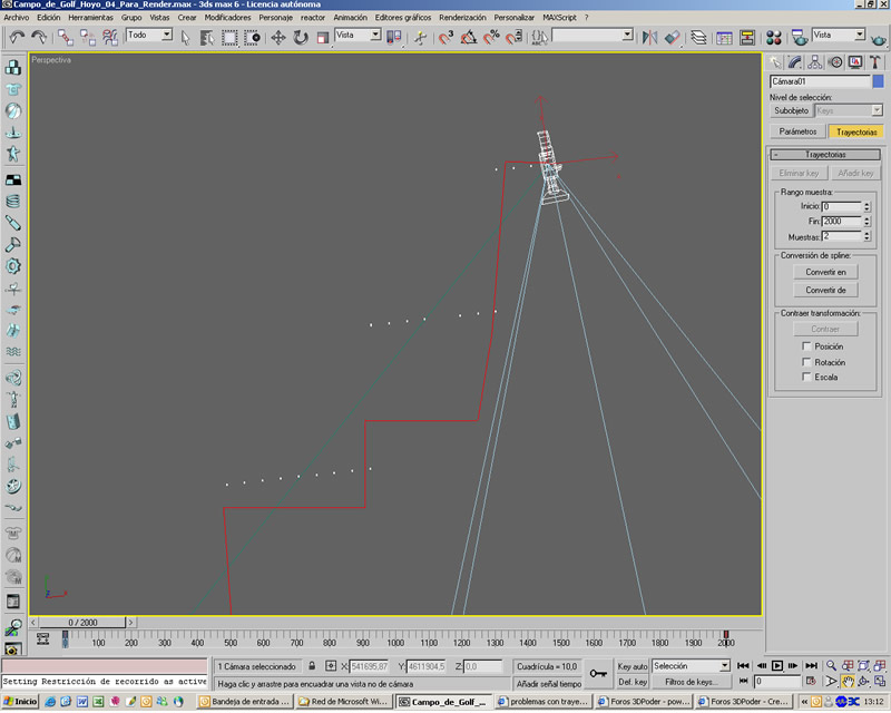 Buenos días: Estoy intentado mover una cámara por una trayectoria y la cámara va a trompicones. He creado unas cuantas cámaras y trayectorias y sigo con el problema. Os envío un imagen más clarificadora. Un saludo y gracias de antemano.