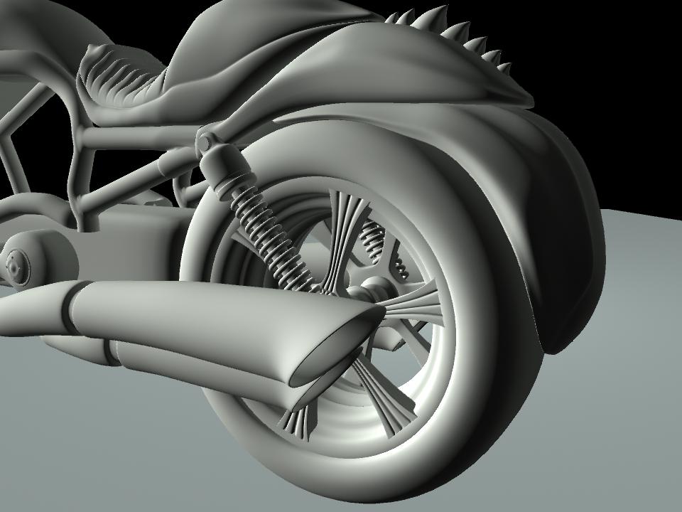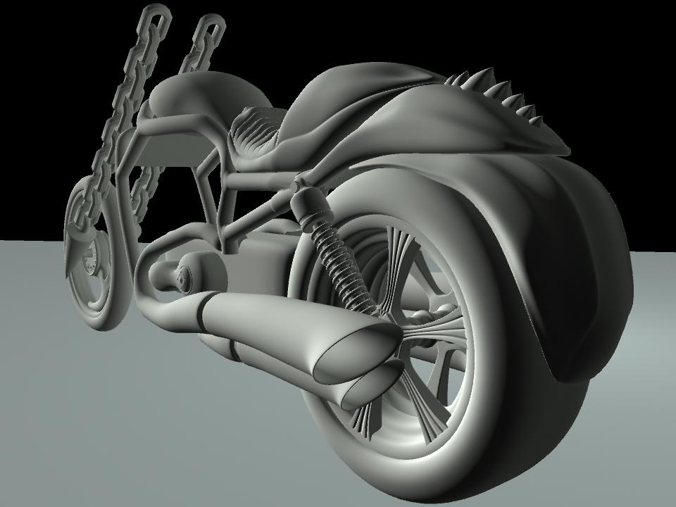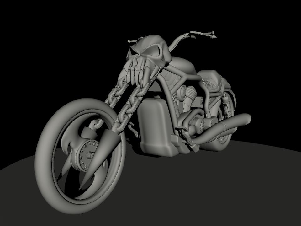 Subo un pequeño avance de la moto, dejaré un momento el modelo de Ghost Rider para no bloquearme (más?) mientras trabajo en esto, es una combinacione entre la moto de la película y una Harley davidson nightrod 2006, espero que les guste y como siempre espero sus comentarios y sugerencias.