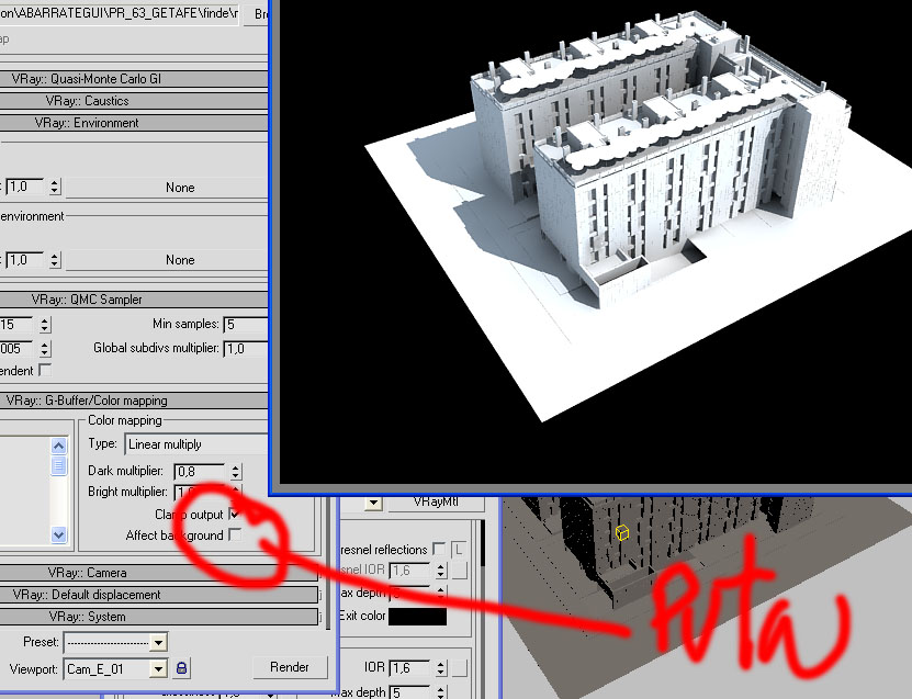 Tíos me he modelado este edificio entero este sábado cuando le tiro la prueba de render en Vray para probar una cámara me da estas manchas.