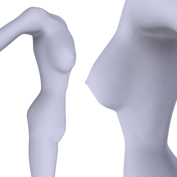 Tienes razón, además al levantar los brazos me di cuenta que hay muchos errores ocultos, el limpiado un poco el seno además del abultamiento y mi poca experiencia en polígonos he descubierto infinidad de vértices ocultos que generaban abultamientos.