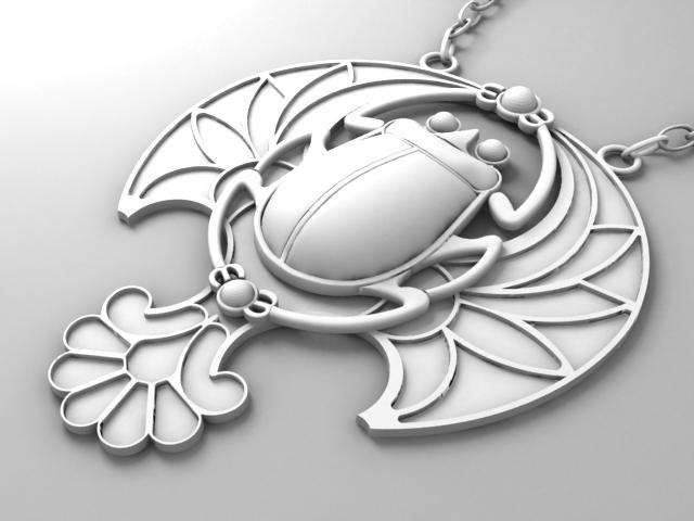 Hola a todos. Es el primer trabajo 3d que público, gracias por darme su opinión. El modelo es un amuleto con un escarabajo sobre una flor de loto. La referencia es una fotografía de antigüedades que encontré vía google.