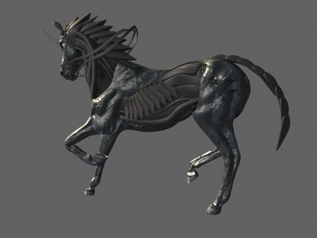 Algunos muchachos me preguntaron cómo hice los cables internos del caballo y del personaje. Si hubiese modelado línea por lína me hubiese vuelto loco, así que, pensé en una manera de hacer muchos ables al mismo tiempo. Usé algunos modificadores básicos para dar forma a los cable, alguien que tenga una mejor idea por favor compartirla.