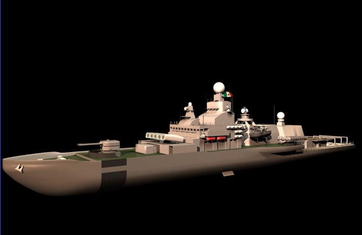 Hola mis amigos. Pues esta vez les venimos presentando un nuevo barco que recién se está cocinando en el horno. Ideada para cumplir misiones de defensa y apoyo. Como ven en la parte de popa cuenta con una bahía para transporte de un minisubmarino para rescate e investigación (2 Crew).