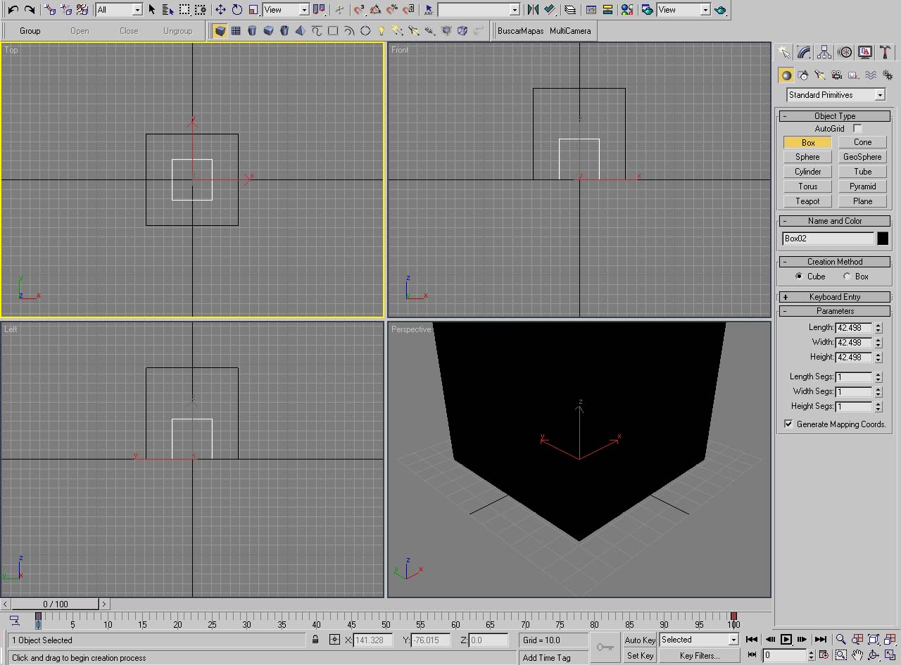 Lo que me pasa ahora es que, algo toqué en la configuración del 3ds Max sin querer, ya que ahora siempre que hago una línea o caja o lo que sea me la hace en las coordenadas 0,0,0 y no sé porque. Yo pensé que era sólo en esta escena, pero cunado abrí otra sesión de max también me hace lo mismo, además me lo pone como si estuviera animado, en la captura se ve bien.
