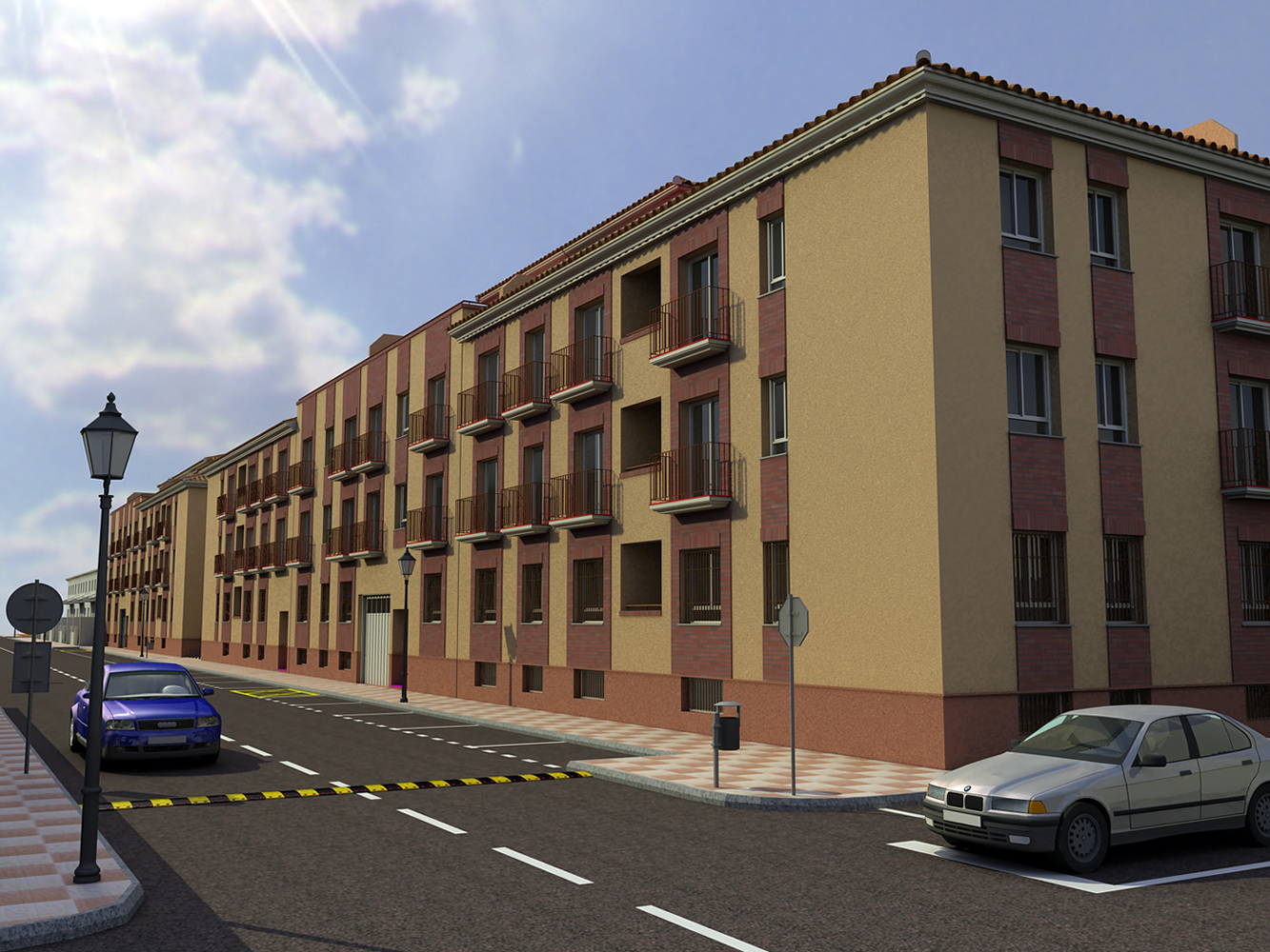 Hola de nuevo. Aski os dejo otra imagen para que me digáis que es lo que os parece y en que la mejoraríais. Ya sé que le faltan unos peatones y persianas al edificio, pero si cargo mucho el diseño no me tira el ordenador.