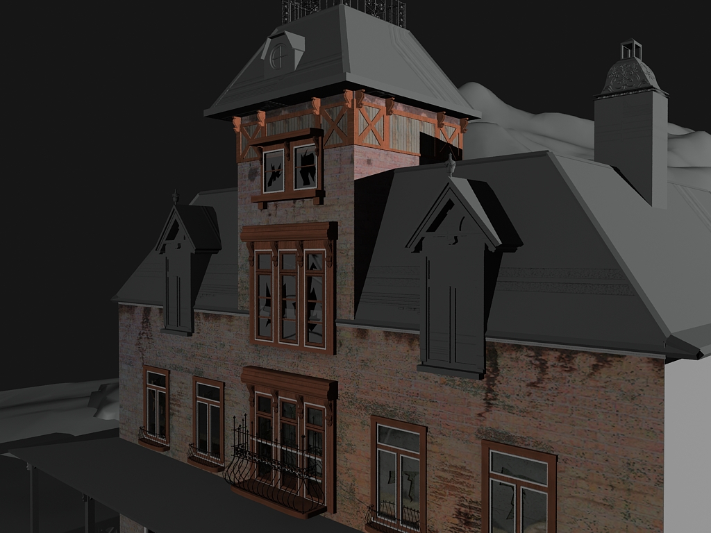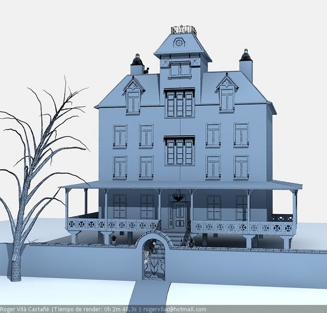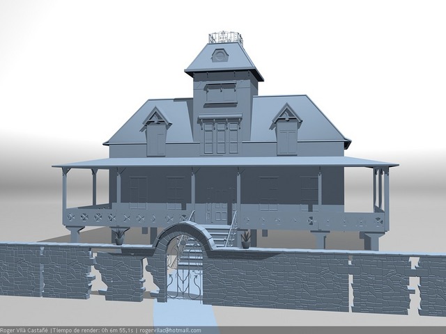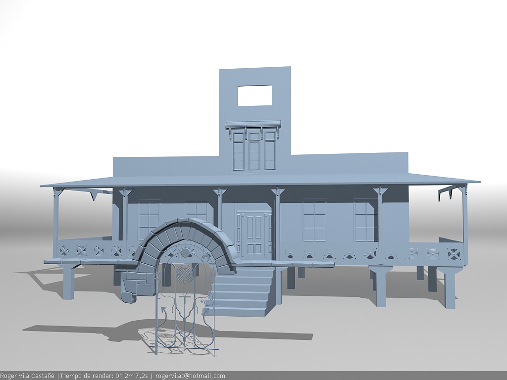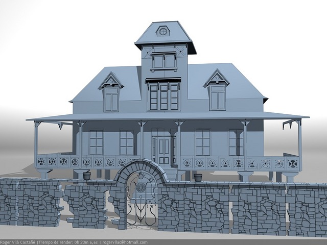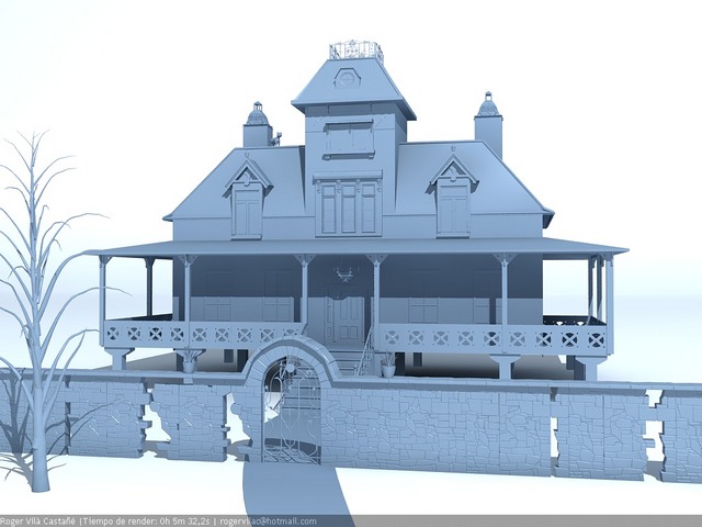 bala perdida sí, estoy usando una casa de referencia que encontré aunque modifico algunas cosas como es la entrada de la casa y quien sabe, un poco sobre la marcha. El modelado esta íntegramente hecho en 3dsmax.