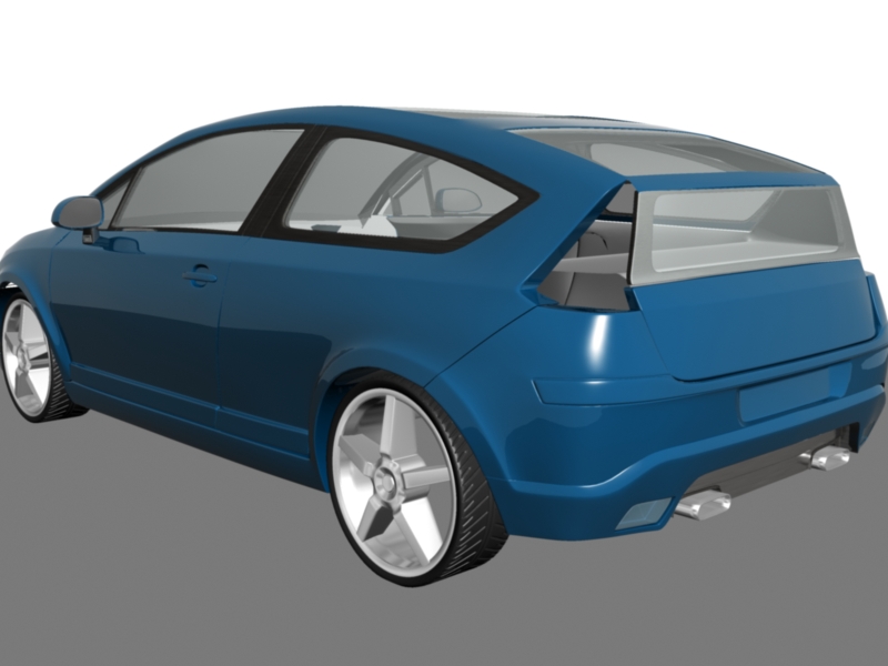 Muy bien resueltos los montantes, es lo que suele fallar en los modelos de coche. Muestra una vista en alámbrico a ver cómo tienes esos polígonos. El único fallo así evidente es que te lo has tomado literalmente lo de ruedas de perfi bajo.