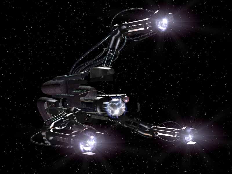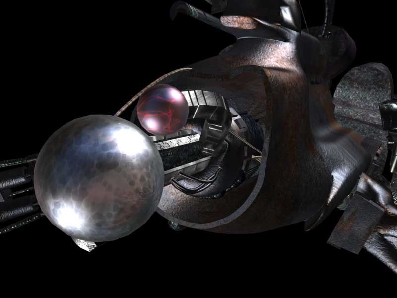 Tiene muy buena pinta. Aunque al principio no encontraba el bicho por ningún lado. Resulta que es mecánico. Estaría muy bien verlo animado, seguro que gana mucho con el movimiento. En la última imagen da la sensación de que se mueve tipo calamar, estirando las patas, igual no le llegarían los cables, pero sería una animación muy curiosa para una nave. Saludos.