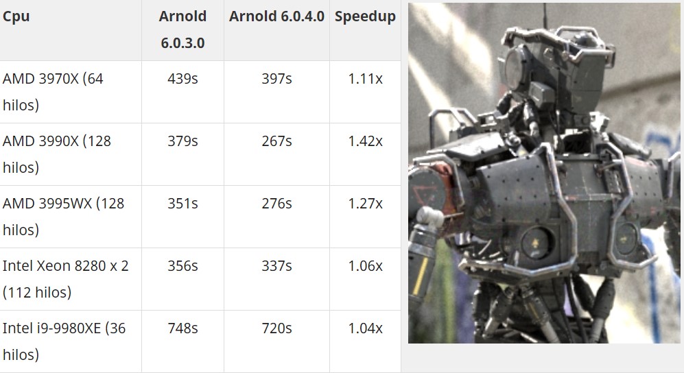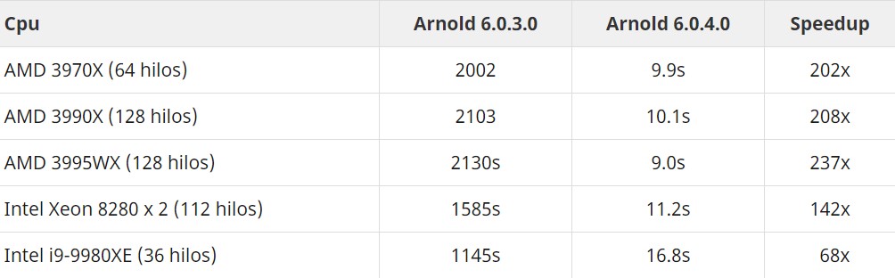 Pues eso, actualizamos a la versión Arnold 6.0.4, a grandes rasgos lo más llamativo es su ganancia en velocidad de render por CPU, utilizando los núcleos de los procesadores más modernos como Threadripperr de AMD y las CPU Core i9 y Xeon más recientes de Intel al renderizar en Windows.