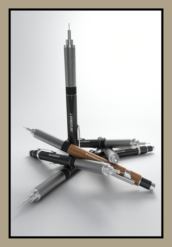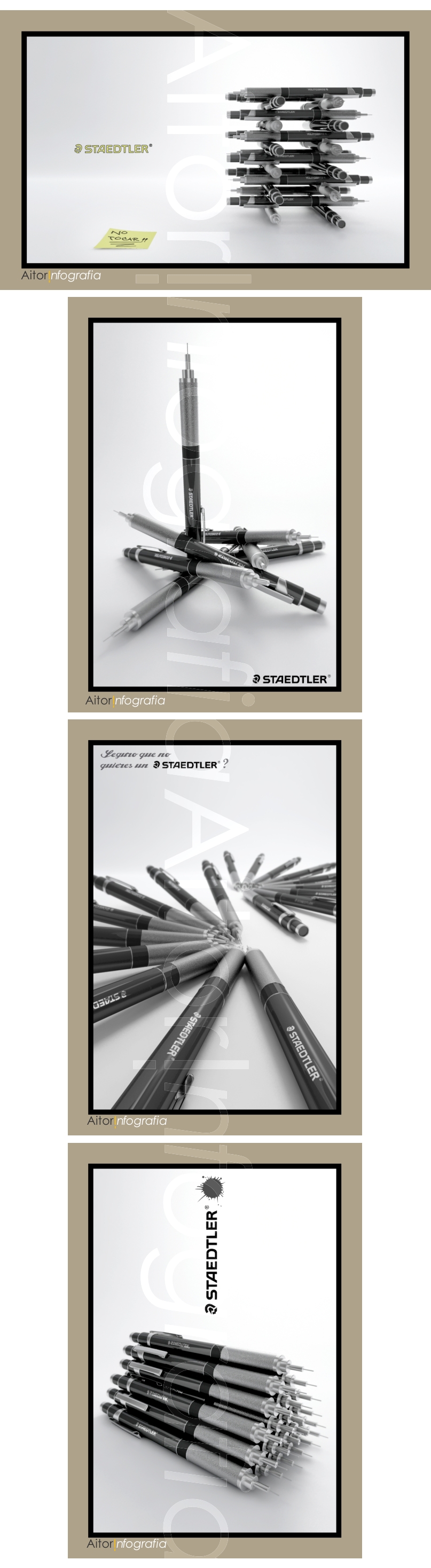 Hola a todos. Bueno hacía tiempo que no ponía nada, además siempre publico infoarquitectura, pero esta vez son unas presentaciones de un portaminas de la marca staedtler. La estética la cogí de unos bolígrafos que vi por algún lado estos días, además pregunte hace días como podría hacer este tipo de presentaciones tipo estudio fotográfico, bueno pues aquí está el resultado espero que os guste y que no me deis mucha caña.