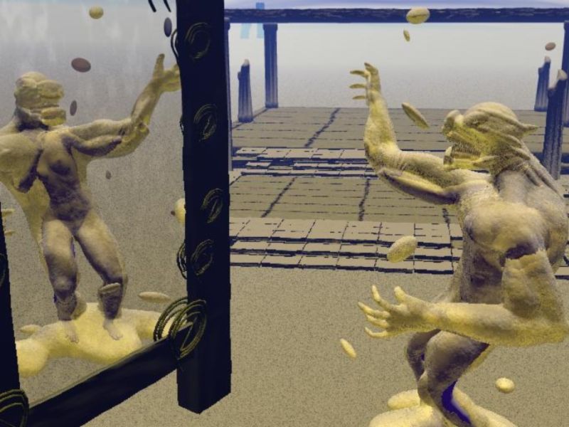 Se trata de hacer referencia a un método de defensa que utilizamos en nuestra vida en nuestras relaciones. Se utilizó Poser 5 para el modelo base de la mujer, Bryce 5 para crear las montañas, ambiente y bestia usando metaballs y 3ds Max 5 para retocar a la mujer, y para el templo, así como PhotoImpact 8 para las texturas.