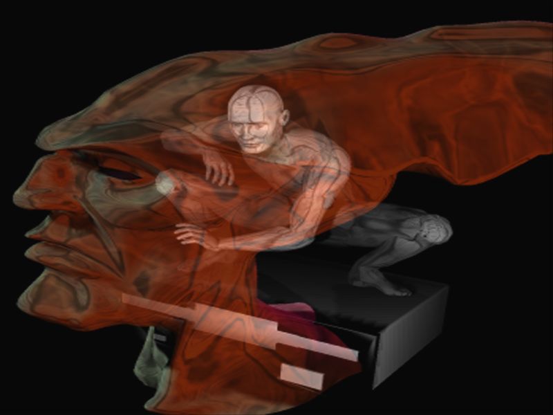 Una imagen, no sé cómo describirla. Parece como parte de uno de esos flashes terroríficos que aparecen a toda velocidad en las películas de terror. Me gusta el concepto y el modelado, sobre todo el cabezón. ¿el otro es del Poser. Un saludo.