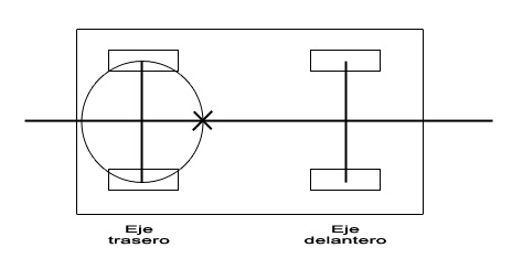 La x marca el lugar. Tienes que colocar el pivote del coche en esa posición, para que el follow resulte convincente. No es totalmente exacto, pues la geometría de ackerman tiene más miga, pero probablemente te resulte suficiente. Siempre y cuando no pretendas hacer giros muy cerrados.