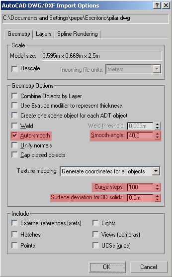 Os digo que en todo este proceso solo importan las opciones del cuadro de diálogo de importación en 3dsmax. Me lo comentó no hace mucho Dideje y es cierto, después de muchas y muchas pruebas he llegado a esa conclusión.