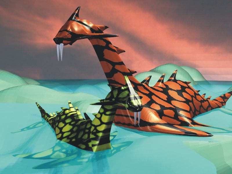 Nombre: dragones marinos durmiendo. Programa 3d: Blender creator 2.22. Tamaño: 800 por 600. Formato: jpg. Nota del autor.