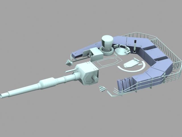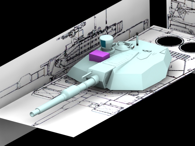 Y digo medio porque lo hago a medias con Infograph, del foro 3dsymax, foro amigo. El hizo la barcaza y como dudaba de seguir le propuse acabarlo yo, así que, os voy poniendo cosas, básicamente voy a hacer la torreta entera, y las orugas, más lo que le falte a la barcaza, que es bien poco. El ha usado 3dsMax 8, yo curro aún con el 3ds Max 3.1, así que, vosotros opinareis.