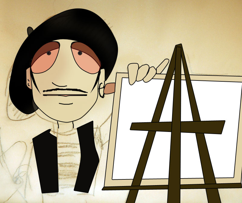 1: el profesor de pintura, un día, aburrido, no, aburrido no, colocado, o triste, triste y colocado, se coloca porque está tristeo, cabreado bueno, no sé. Ahí esta, el tipo.