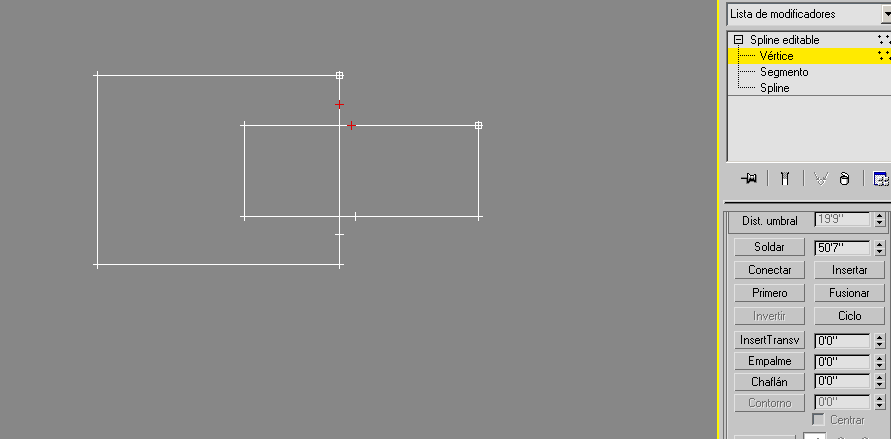 Estoy con 3dsmax versión 5. He realizado 4 formas splines (4 rectángulos) y los he asociado entre ellos de manera que, ahora constituyen una sola forma.