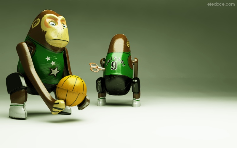 Os adjunto lo que ha venido a ser mi segunda reproducción de la serie de rigor. El mono en cuestión está basado en un juguete de toply (me pregunto si toply será el individuo o la marca) aunque me he permitido el lujo de salirme un poco del guión y aderezarlo con una nueva cara y otra indumentaria, para ser concretos, la de mi equipo de básquet local, no soy muy dado al básquet, pero ahí dejo el guiño para quien lo coja.