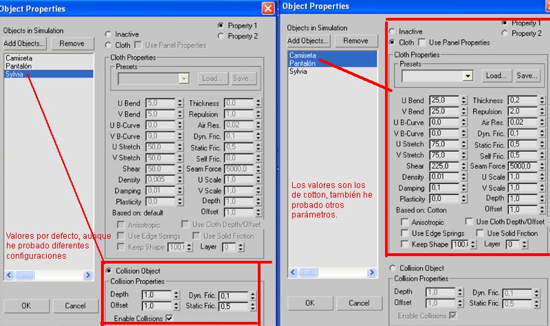 Hace poco me dieron el genial conselo de que cuando pones Cloth>MeshSmooth>shell, uno de los dos últimso tiene que ir arriba, por muchas ventajas, creo que de procesado, y en los viewports y tal. La desgracia es que mi dislexia no me permite recordar cuál era mejor que fuera encima del otro.