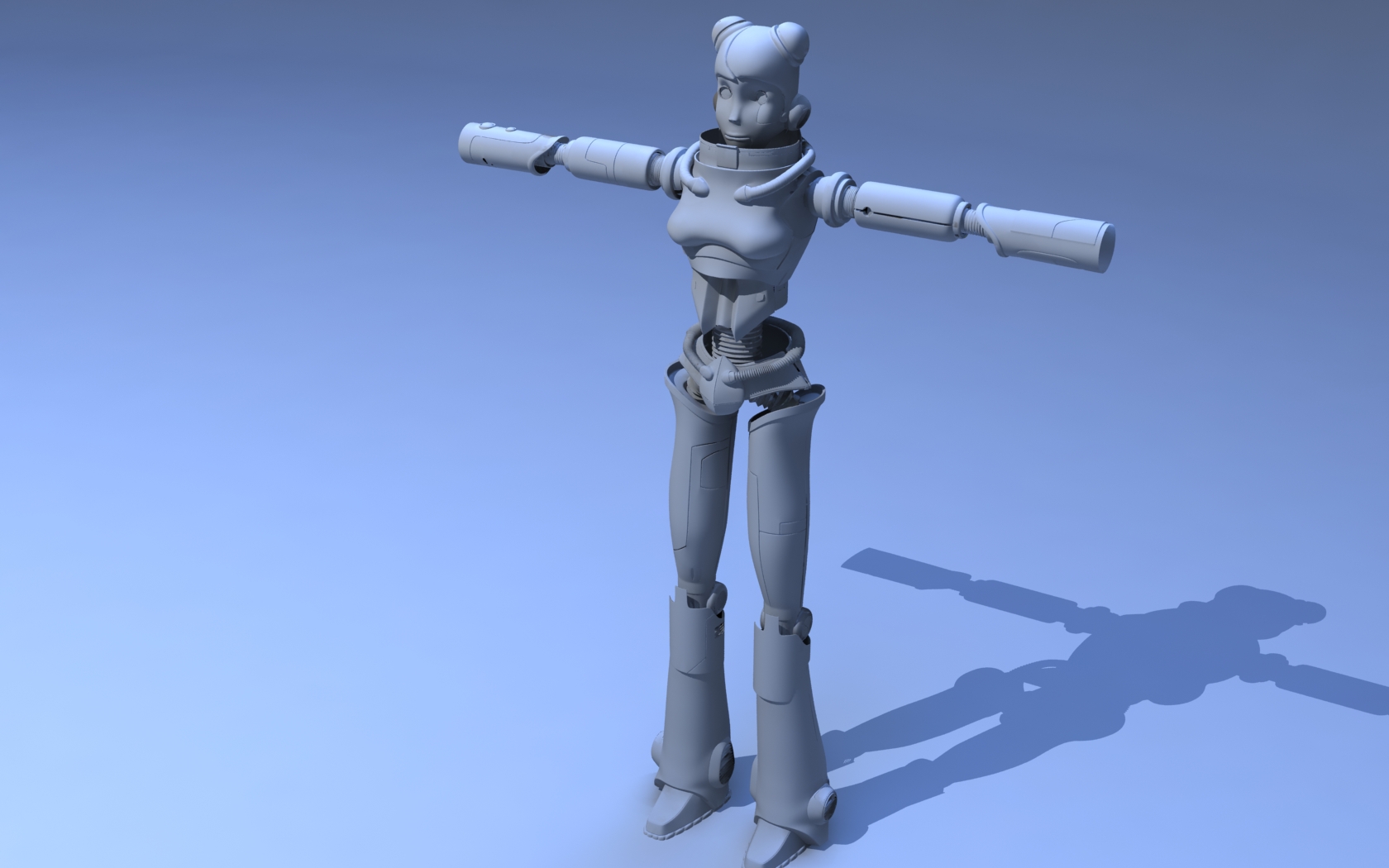 Actualmente, estamos inmersos en la terminación del tráiler (la productora nos ha pedido entregarlo antes del 9 de septiembre) y el robot femenino forma parte de una escena. Otro colaborador, Daniel, iba a modelar, pero si conseguimos quitarle ese trabajo de encima, puede dedicarse a la animación, que es lo que realmente quiere hacer.