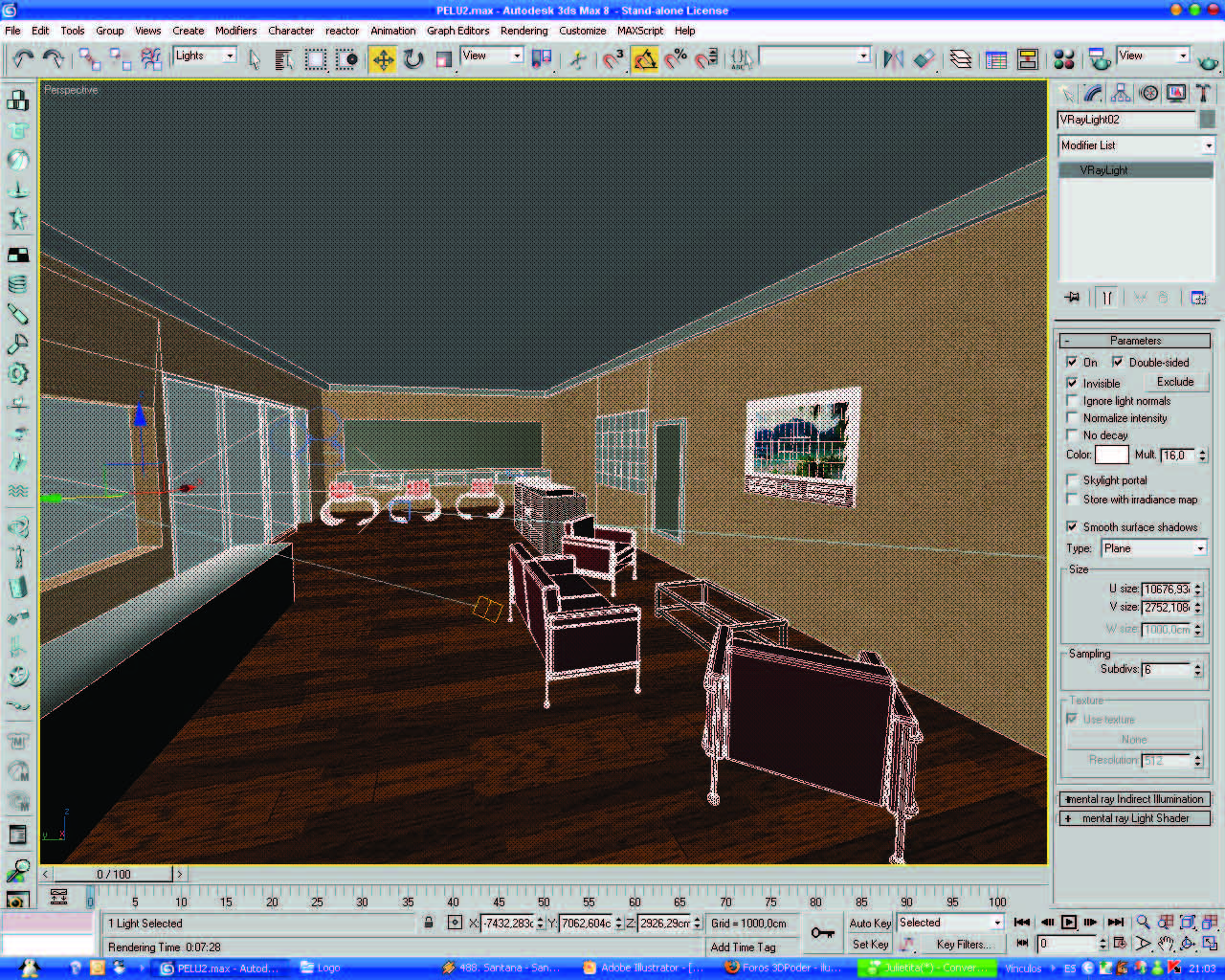 Vaya, principiante, directo a ocupar Vray? Yo creo que sería mejor practicar cosas básica y no entrar a las grandes ligas de una, no es llegar y meter parámetros en Vray, estudia, mira interiores hecho y verás que lograras un gran nivel a futuro, y lo otro el ángulo de la cámara está muy excesivo, demasiado, se llegó a deformar el sillón.