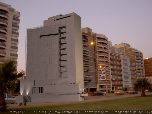 Tiro el render y me sigue apareciendo el mapa de fondo (del environment) a través de mi edificio. O sea que seria que mi edificio es transparente.