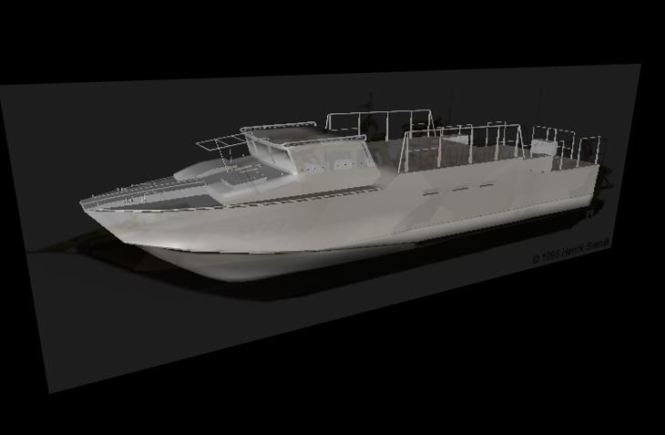 Vi una vez que te comentaron que hacen los cascos con Splines curvas, yo los hago visuales pongo un cuadro y voy moviendo los puntitos, empiezo por la proa y voy abriendo, este en especial lo hice al revés de atrás para adelante, pero se me hizo un poco complicado por el cuadro del frente.