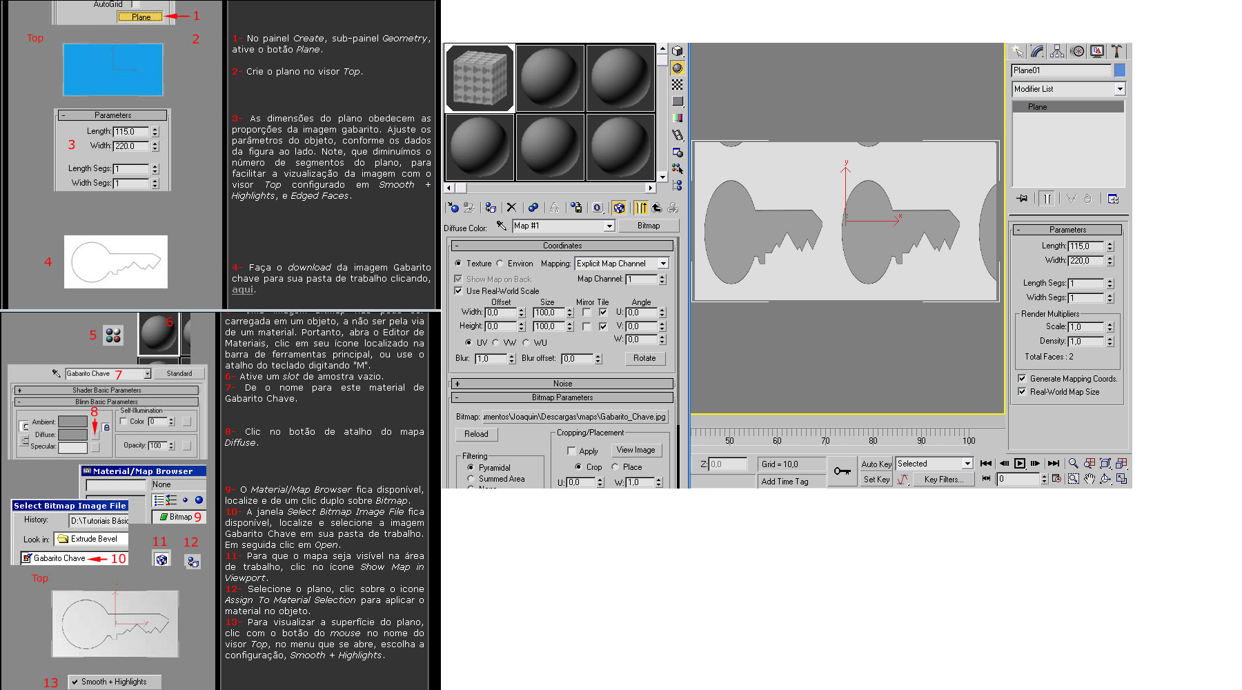 Por otro lado, el tutorial que estas siguiendo tiene algunos errores al respecto, entre ellos, por ejemplo, el hecho de que tienes que crear un plano con las exactas dimensiones del bitmap, esto es incorrecto - No significa que no puedas hacerlo, pero no es necesario en absoluto - No tienen que ser las mismas dimensiones y ni siquiera tienen que ser proporcionales. De hecho, a menudo es mejor que no lo sean, especialmente cuando la imagen de referencia proviene de una fotografía y de la misma solo nos interesa un objeto o sujeto y no todo el bitmap, pudiendo crear de este modo un plano que solo abarque la zona rectangular de aquello que queremos modelar y que por ende cause la menor molestia posible en el entorno.